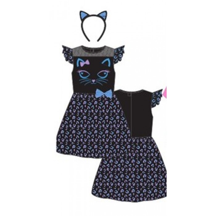 KID SIZE BLACK CAT WITH PRINT DRESS COSTUME