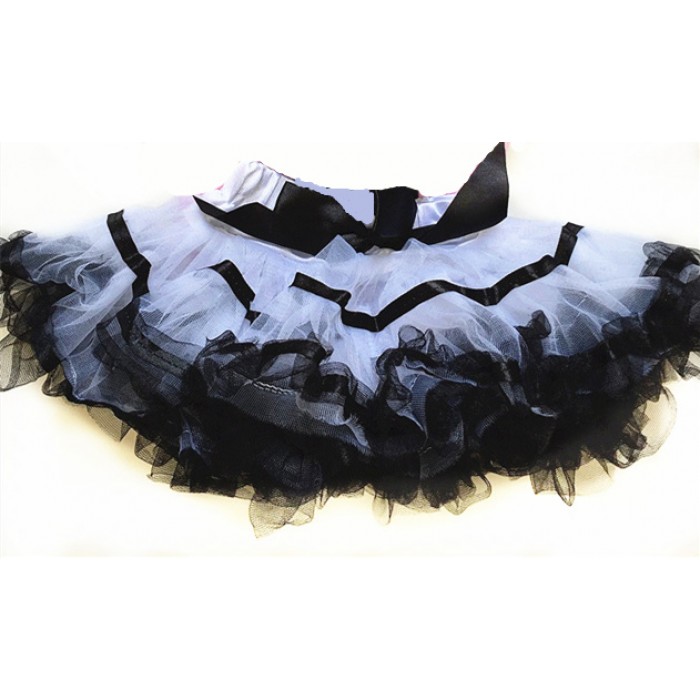 WHITE TULLE PETTI SKIRT WIHT BLACK RUFFLE AND RIBBON