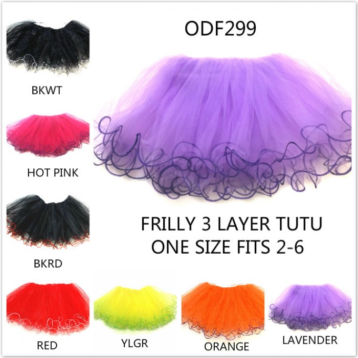 The frilly ballet tutu has three layers with each layer bottom has wavy frilly string .