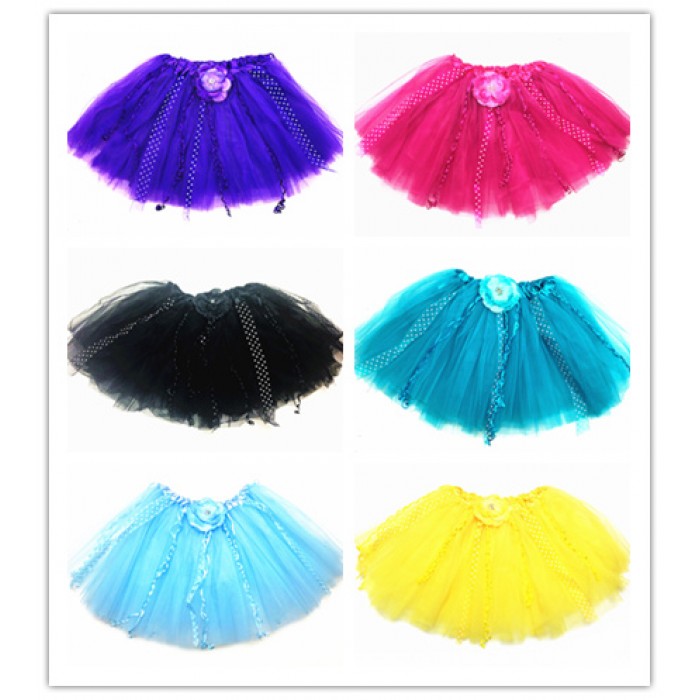 The ballet tutu has three soft layers, decored with flower and sheer dot ribbon..
