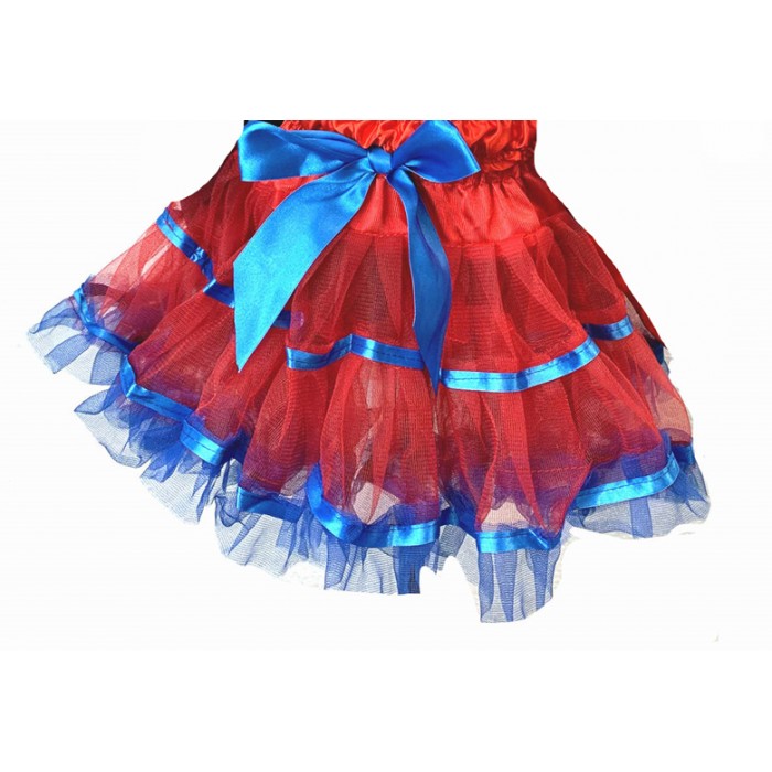 RED TULLE PETTI SKIRT WITH ROYAL BLUE RUFFLE AND RIBBON
