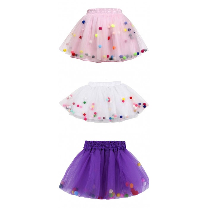 White, Pink , Purple color with rianbow pompom inside tutu.